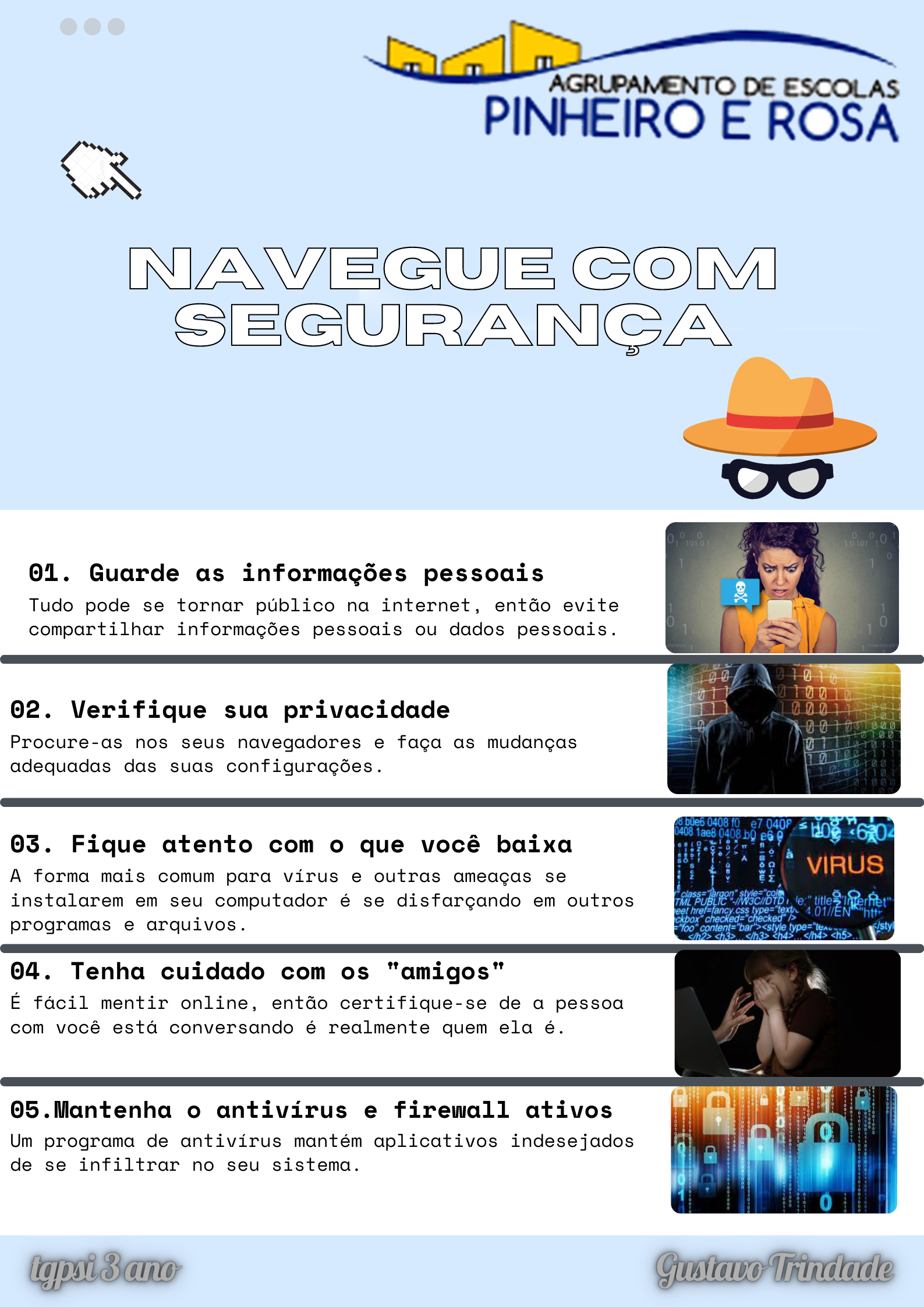 Preparação pelos alunos do 9ºD e sessões de apresentação aos alunos do 5º e do 6ºano sobre Segurança na Internet.