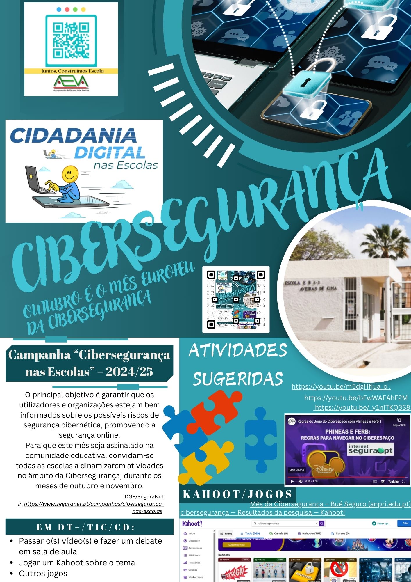 Kahoot sobre Cibersegurança; Atividades no site Bué Seguro; Visionamento dos vídeos recomendados e debates