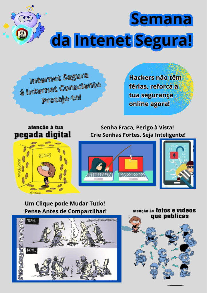 Nesta semana e no âmbito do Dia por uma Internet Mais Segura (terça-feira, dia 11/2), no Agrupamento vamos desenvolver algumas atividades em colaboração com a disciplina de Cidadania, os Embaixadores Digitais de cada turma e do PADDE AEPAC (Plano de Ação de Desenvolvimento Digital da Escola). Assim, pretendemos sensibilizar a comunidade para a importância da Cidadania Digital, promovendo boas práticas no uso da Internet, redes sociais e outras plataformas online.