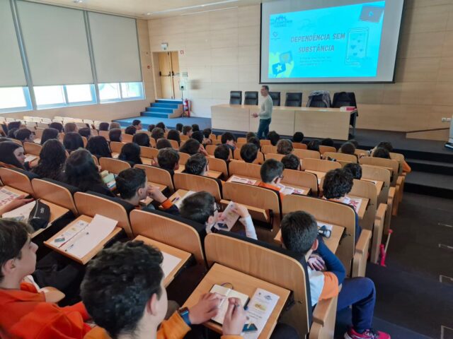 O mês de janeiro terminou com uma reflexão sobre o uso excessivo dos dispositivos eletrónicos. As turmas dos 8.º e 9.º anos participaram na ação de sensibilização "Dependência sem substância", dinamizada pelo Enfermeiro Delfim Sousa e o Dr. Paulo Santos, envolvidos no projeto "Samaritano" da Casa de Saúde Rainha Santa Isabel. Nesta atividade, foram focados os principais sintomas da adição aos dispositivos eletrónicos, bem como a forma como os jovens e os adultos podem prevenir este tipo de adição.