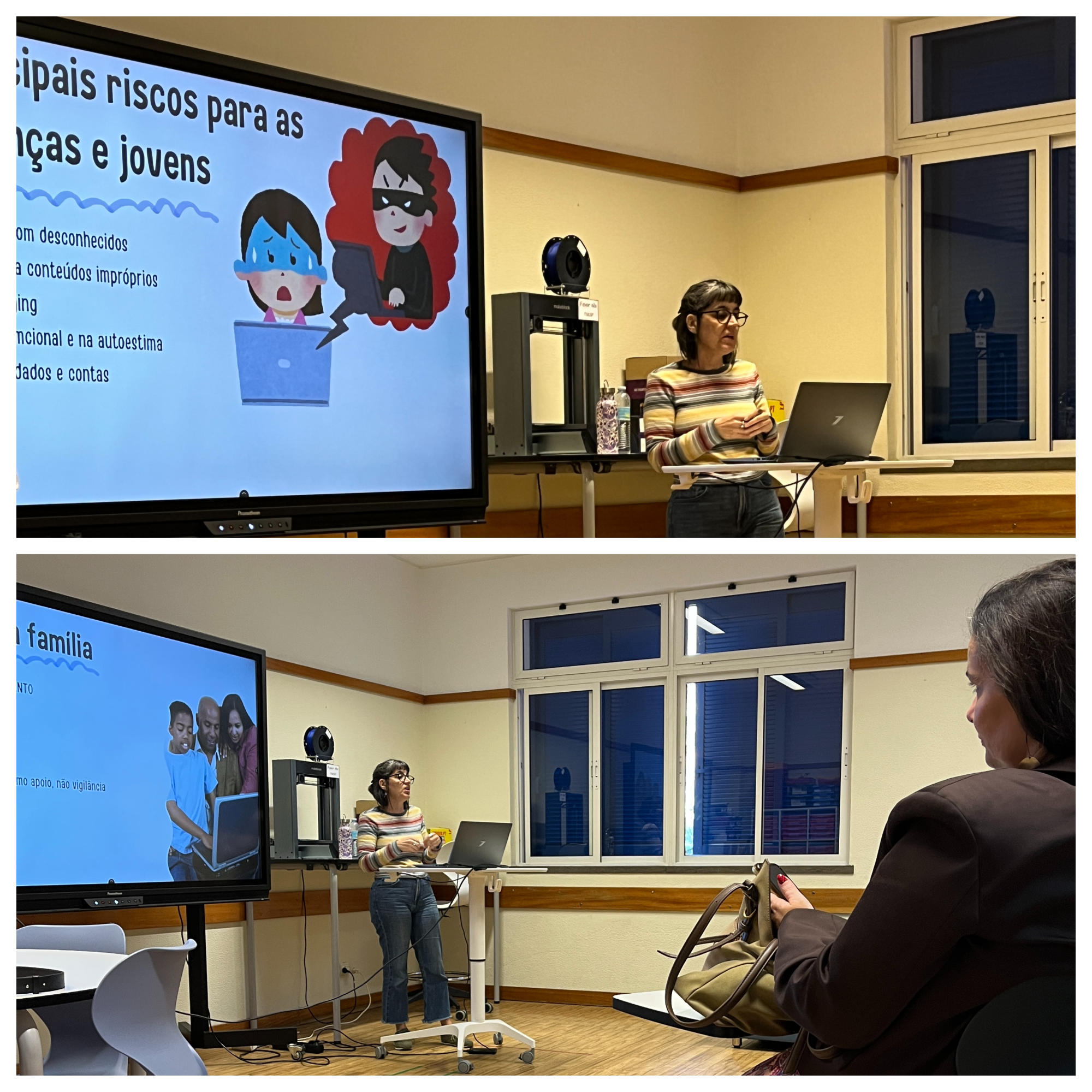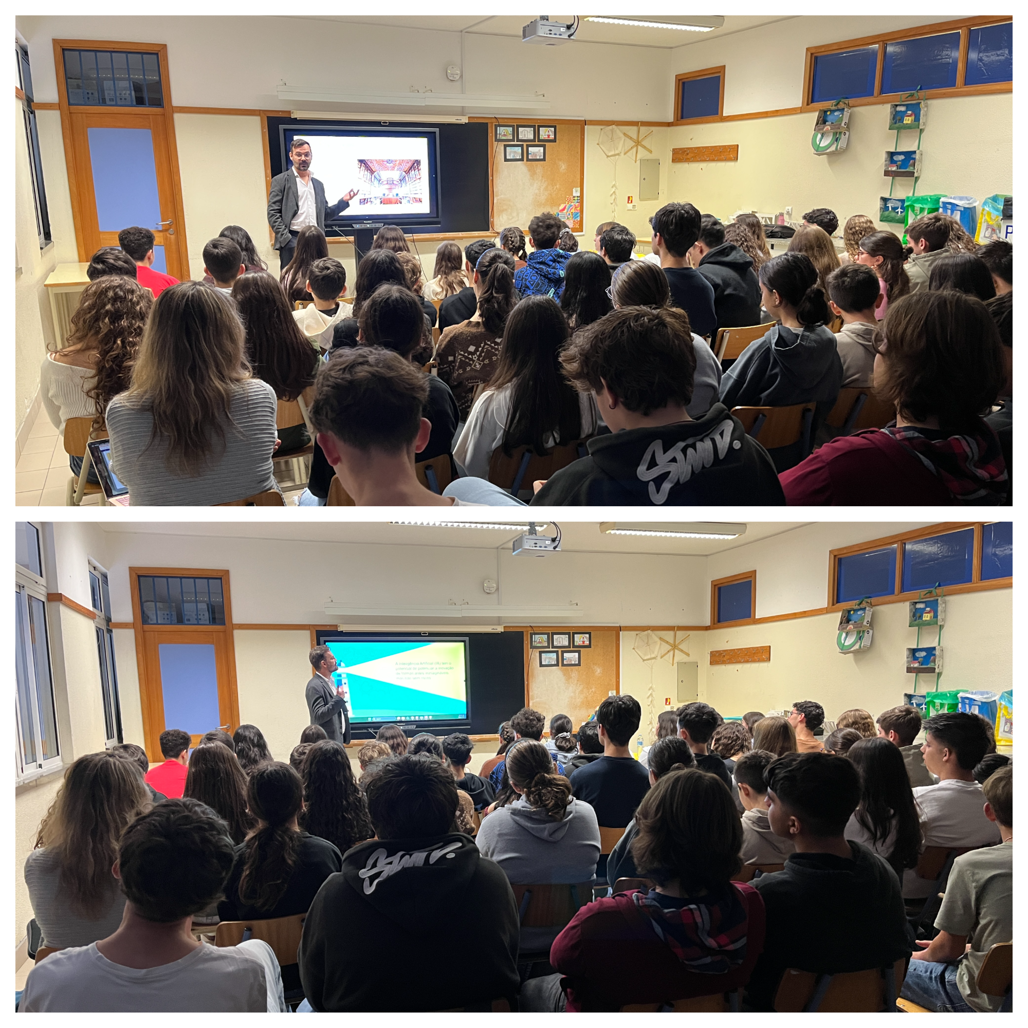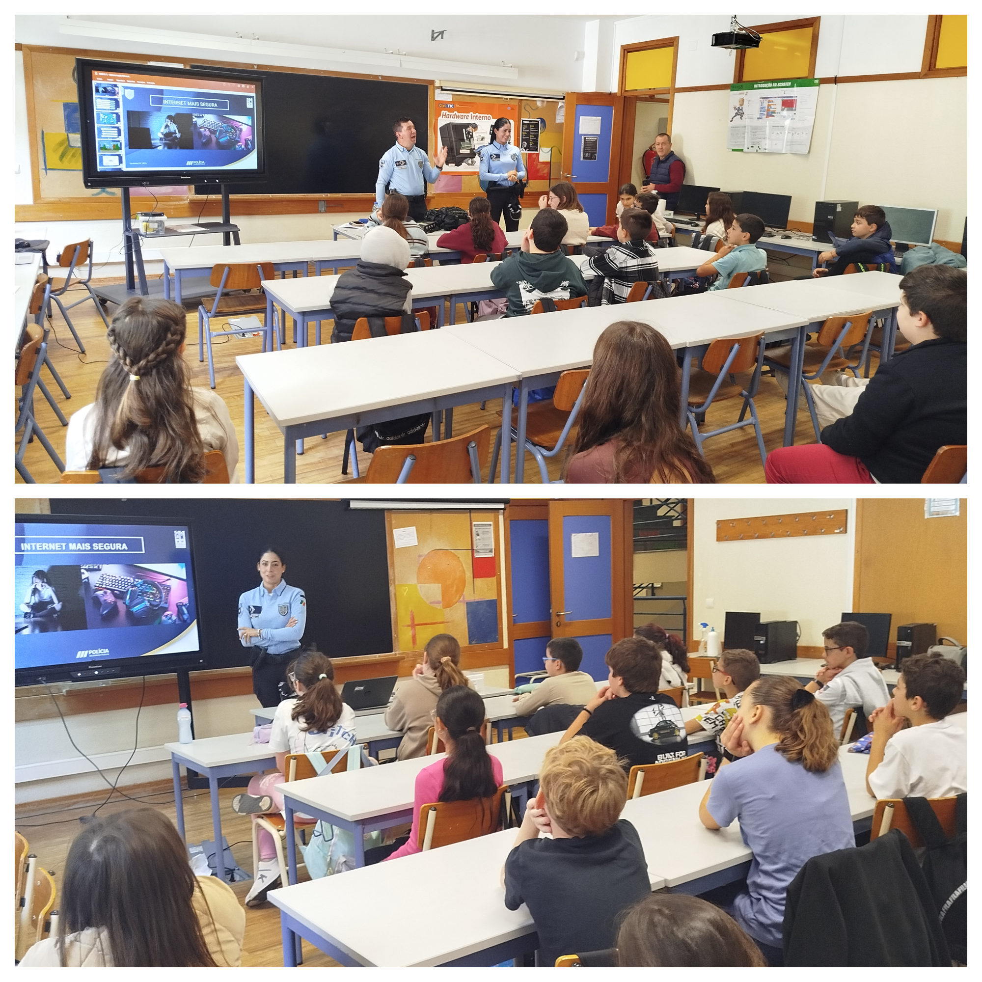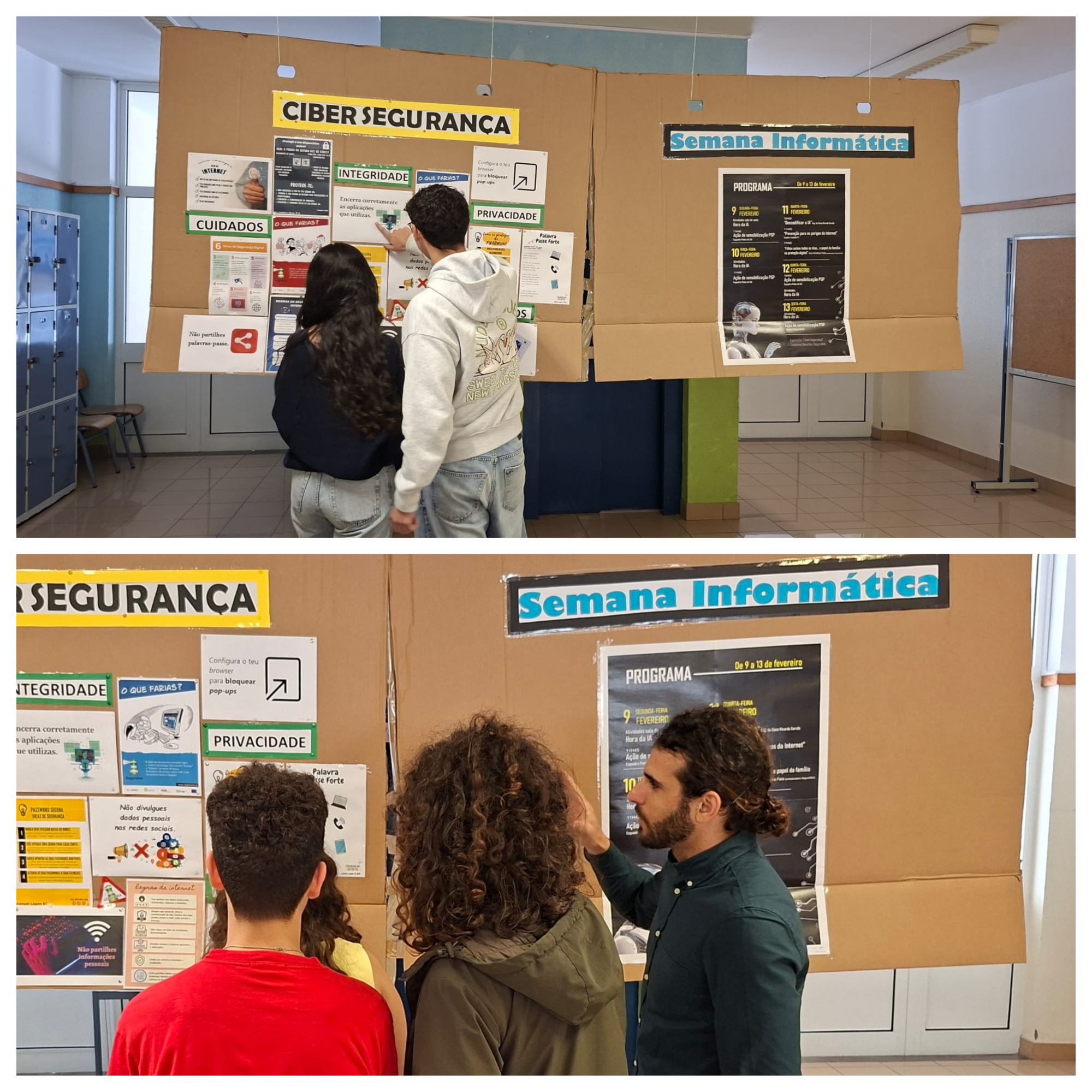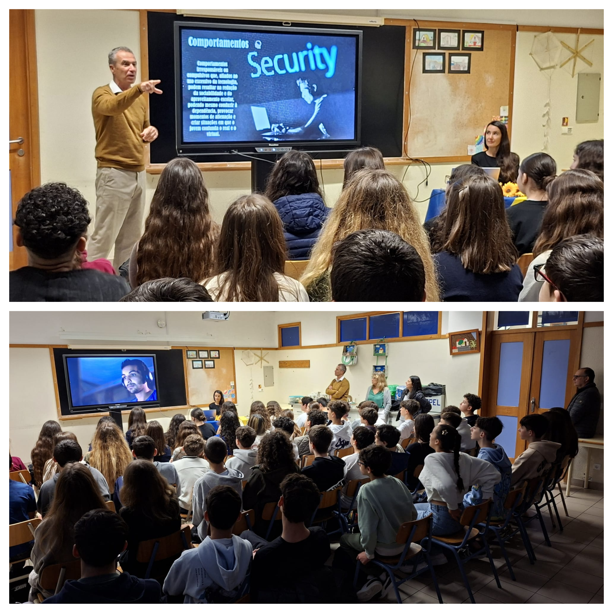 Foram promovidas diversas ações de sensibilização dinamizadas por convidados: "Internet Mais Segura", pelos agentes Agostinho Campanário e Matilde Rodrigues, da Polícia de Segurança Pública (esquadra da Ponta do Sol), com sessões dirigidas às turmas do 5.º ano; "Descodificar a IA", pelo Engenheiro Ricardo Garcês da Cisco, com a participação de turmas do 3.º ciclo e secundário; "Os Perigos da Internet", pelo Inspetor José Custódio do Departamento de Investigação Criminal da Polícia Judiciária, com participação de turmas do 8.º ano; "Filhos online todos os dias… o papel da família na proteção digital", pela embaixadora do SeguraNet, professora Ana Cristina Faia, no âmbito do projeto Soluções Digitais, destinada aos encarregados de educação. Para além destas intervenções externas, os alunos participaram ativamente em sala de aula nas iniciativas "Hora da IA" e no projeto "Rayuela". Paralelamente, foram expostos, no átrio do segundo piso da escola, cartazes sobre o tema “Cibersegurança”, elaborados pelos alunos.